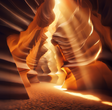 地球の深部から刻まれた壮大な渓谷の曲線美が金色の光に照らされ、まるで液体の金を思わせるほどです。